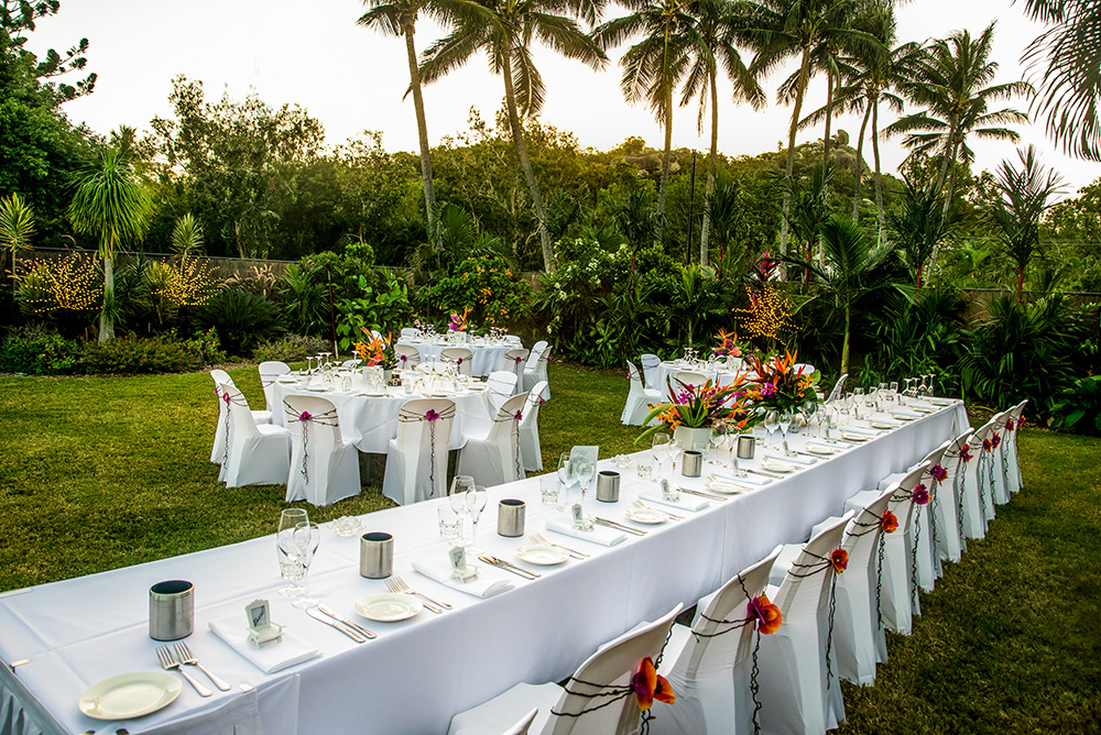 The Water Garden Oasis, epitomises intimate, tropical elegance offering tranquil surroundings that only private gardens can afford. Tucked away amongst lush gardens, the cascading water feature and backdrop of rocky outcrops make it a picturesque setting for weddings and special events. Opt for a starlit celebration and enjoy your own exclusive outdoor Garden Bar with cool sea breezes to complement your tropical island experience.